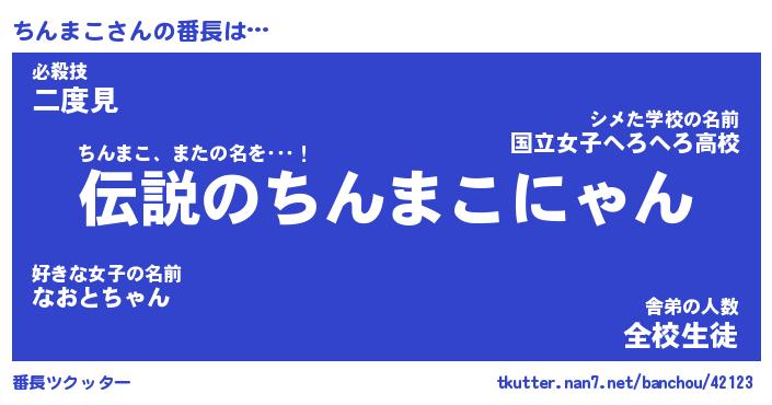| ファンタジー風あだ名 | 『チンフェル』『エターナルチンマコー』 |