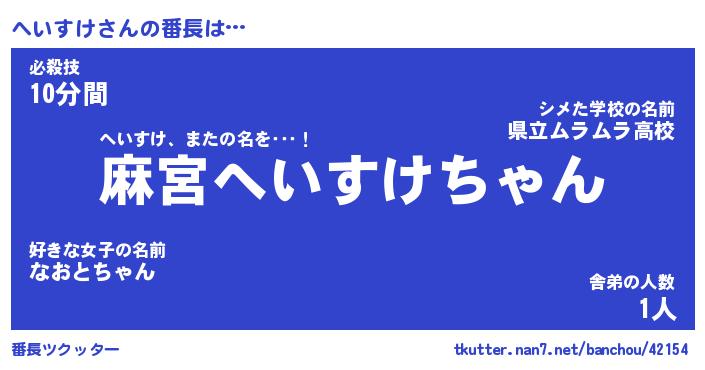 | 意味不明あだ名 | 『ペロリンへいすけ』『永久保存へいすけ』 |