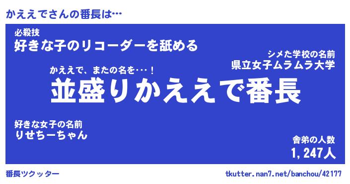 | 意味不明あだ名 | 『ペロリンかええで』『永久保存かええで』 |
