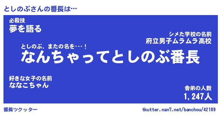 | ファンタジー風あだ名 | 『トシフェル』『エターナルトシノブー』 |