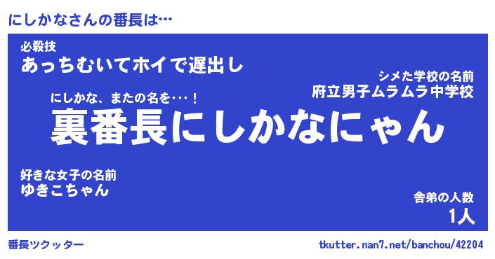 | ファンタジー風あだ名 | 『ニシフェル』『エターナルニシカナー』 |