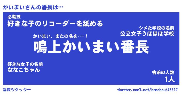 | 意味不明あだ名 | 『ペロリンかいまい』『永久保存かいまい』 |