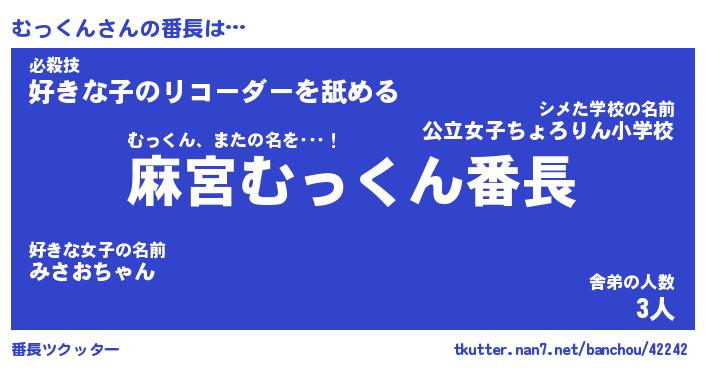 | 意味不明あだ名 | 『ペロリンむっくん』『永久保存むっくん』 |