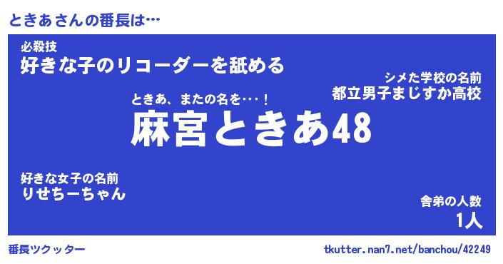 | 肩書あだ名 | 『ときあ店長』『ときあ総理大臣』 |