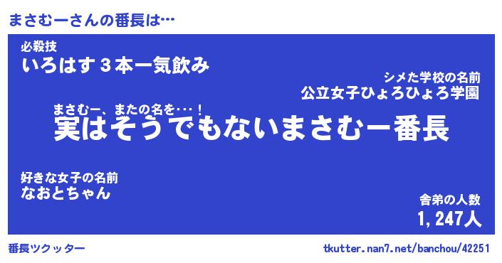 | 肩書あだ名 | 『まさむー御曹司』『まさむー国家主席』 |
