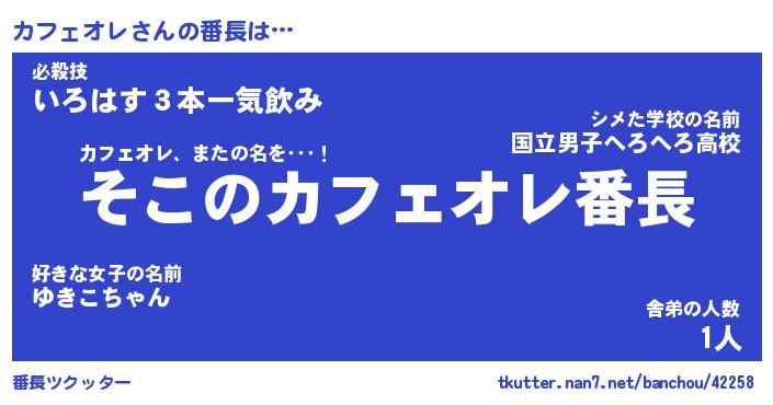 | ヒーロー風カッコイイあだ名 | 『スーパーカフェオレ』『黄金騎士カフ』 |