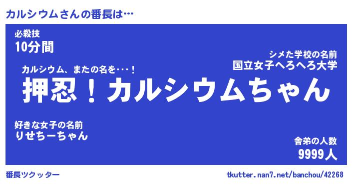 | ヒーロー風カッコイイあだ名 | 『スーパーカルシウム』『天弓騎士カル』 |