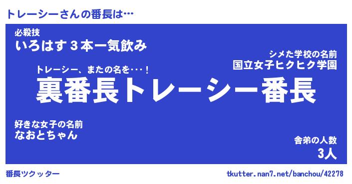 | 肩書あだ名 | 『トレーシー御曹司』『トレーシー塾長』 |