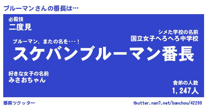 | 男性向けラノベタイトル風あだ名 | 『ブルーマンアートオンライン』 |