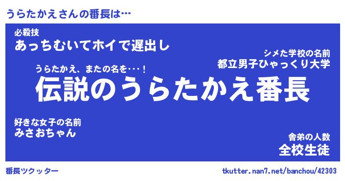 | ヒーロー風カッコイイあだ名 | 『スーパーウラタカエ』『暗黒騎士ウラ』 |