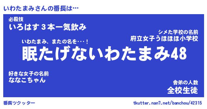 | ヒーロー風カッコイイあだ名 | 『スーパーイワタマミ』『黄金騎士イワ』 |