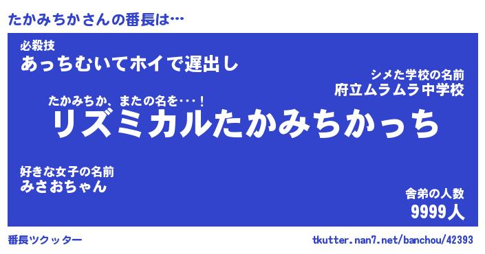 | ヒーロー風カッコイイあだ名 | 『スーパータカミチカ』『暗黒騎士タカ』 |