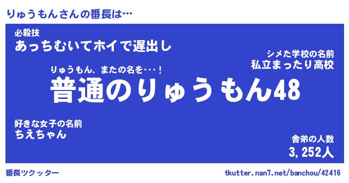 | 伝説のあだ名 | 『不死鳥のスナイパーりゅうもん』 |