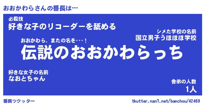 | 男性向けラノベタイトル風あだ名 | 『おおかわらの憂鬱』 |