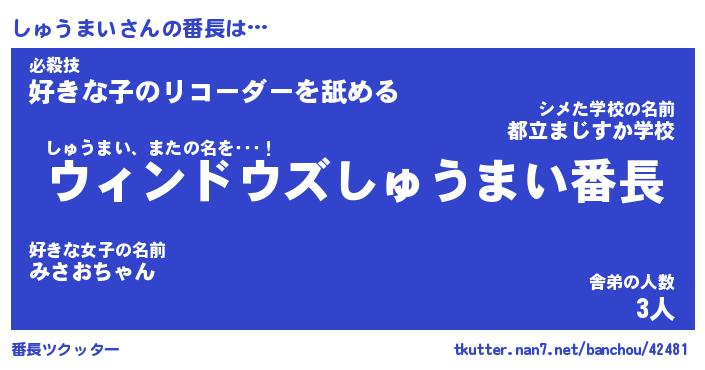 | ポケモン風あだ名 | 『シュチュウ』『シュウダネ』 |