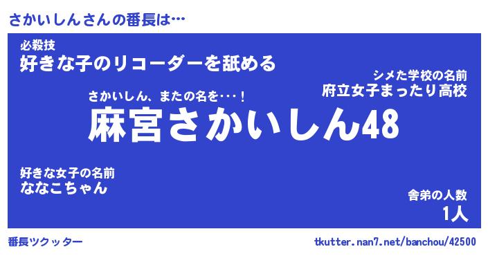 | ヘコむあだ名 | 『さかにー』『なまこ酢』 |
