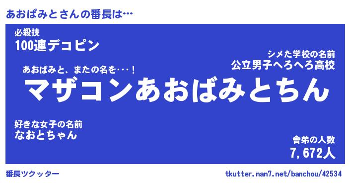 | 伝説のあだ名 | 『封印されしスナイパーあおばみと』 |