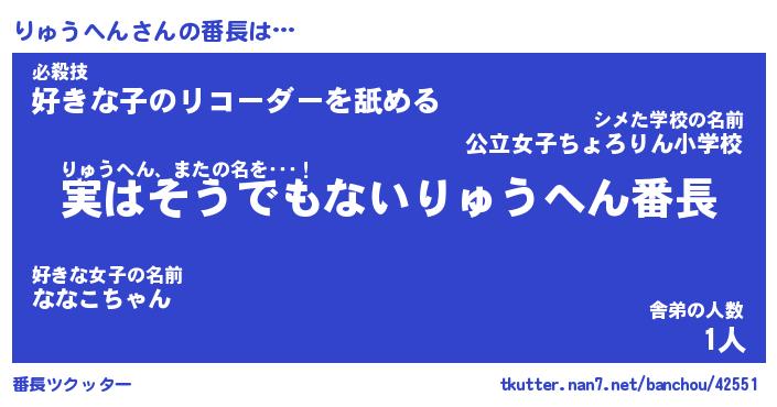 | 2回繰り返すあだ名 | 『りゅりゅ』『りりゅゅ』『がすがす』 |
