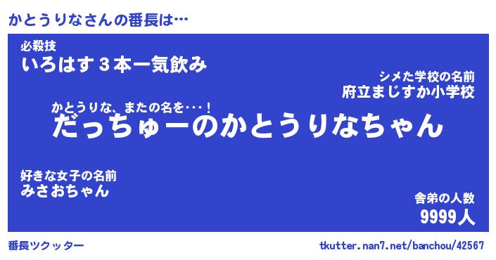 | ヘコむあだ名 | 『かとふぇ~』『牛乳』『かとぷりん』 |