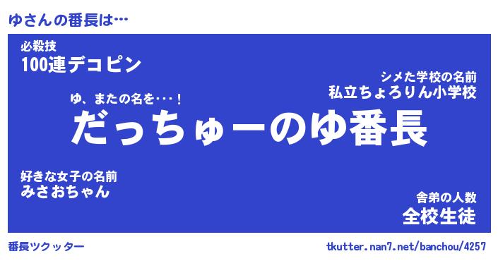 | ヘコむあだ名 | 『ゆにゅー』『つくし』『ゆ太郎』 |