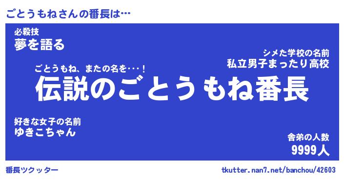 | ヒーロー風カッコイイあだ名 | 『スーパーゴトウモネ』『天弓騎士ゴト』 |