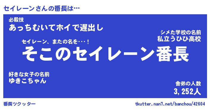 | ヒーロー風カッコイイあだ名 | 『スーパーセイレーン』『銀牙騎士セイ』 |