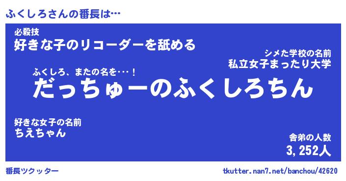 | 意味不明あだ名 | 『ペロリンふくしろ』『永久保存ふくしろ』 |