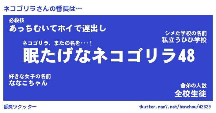 | 男性向けラノベタイトル風あだ名 | 『ネコゴリラアートオンライン』 |