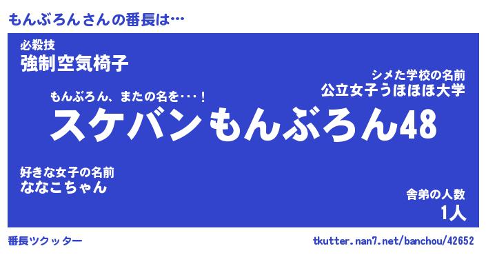 | 肩書あだ名 | 『もんぶろん御曹司』『もんぶろん班長』 |