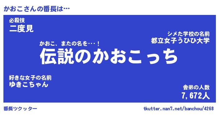 | 意味不明あだ名 | 『ペロリンかおこ』『かおこフォーエバー』 |