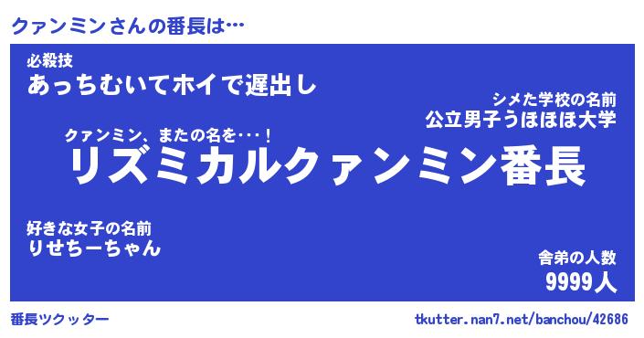 | ファンタジー風あだ名 | 『クァフェル』『エターナルクァンミンー』 |
