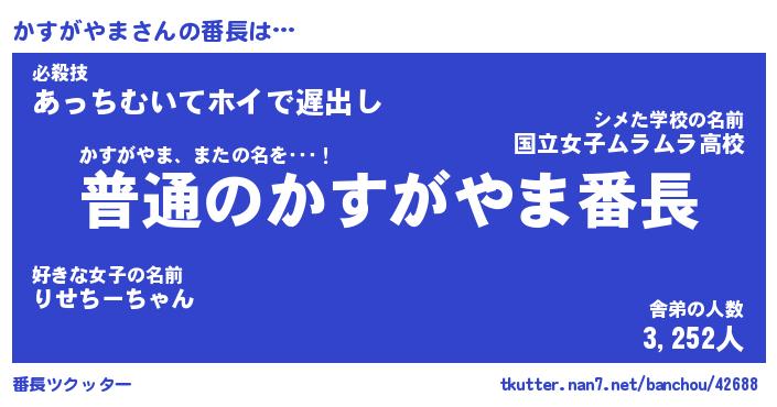 | 男性向けラノベタイトル風あだ名 | 『かすがやまの憂鬱』 |