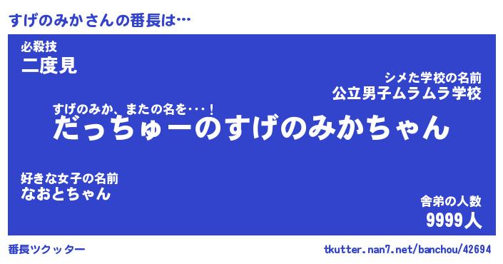 | ヒーロー風カッコイイあだ名 | 『スーパースゲノミカ』『炎刃騎士スゲ』 |