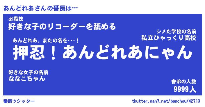 | 伝説のあだ名 | 『封印されしスナイパーあんどれあ』 |