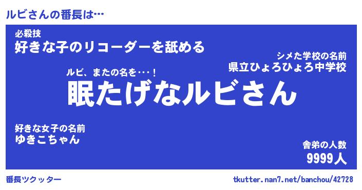 | ヘコむあだ名 | 『ルビっふぃ~』『なまこ酢』 |