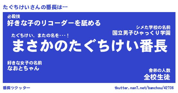 | 肩書あだ名 | 『たぐちけい社長令嬢』『たぐちけい班長』 |