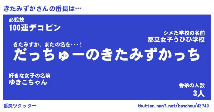 | 伝説のあだ名 | 『伝説のスナイパーきたみずか』 |