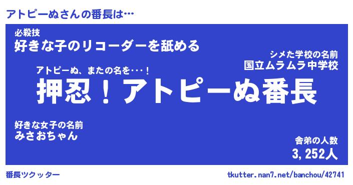 | ヒーロー風カッコイイあだ名 | 『スーパーアトピーヌ』『幻影騎士アト』 |