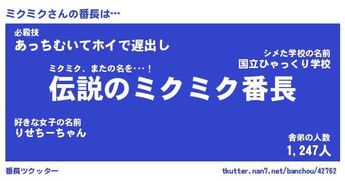 | 肩書あだ名 | 『ミクミク店長』『ミクミク国家主席』 |