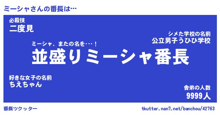 | ヒーロー風カッコイイあだ名 | 『スーパーミーシャ』『天弓騎士ミー』 |