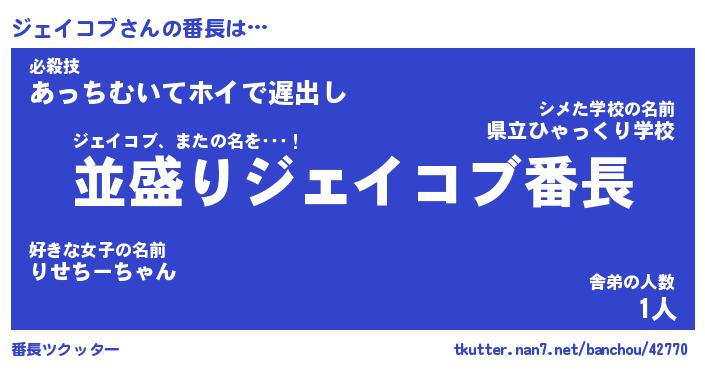 | ファンタジー風あだ名 | 『ジェフェル』『エターナルジェイコブー』 |