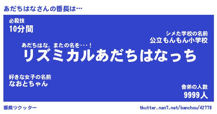 | ヒーロー風カッコイイあだ名 | 『スーパーアダチハナ』『天弓騎士アダ』 |