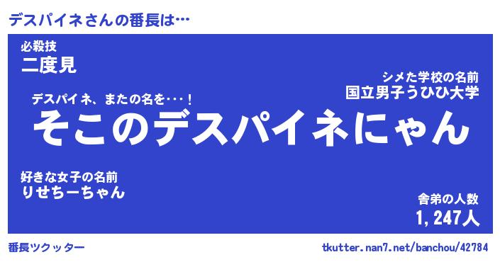 | 2回繰り返すあだ名 | 『デスデス』『デデスス』『くたくた』 |