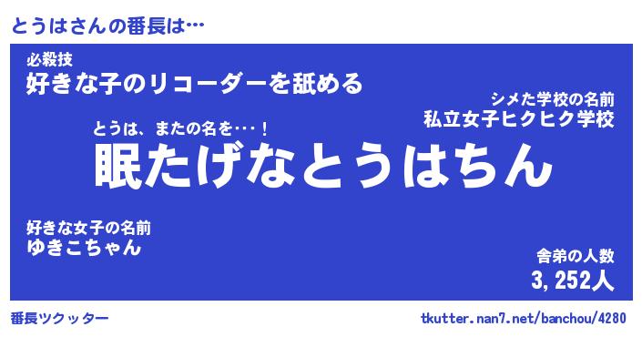 | 肩書あだ名 | 『とうは御曹司』『とうは国家主席』 |