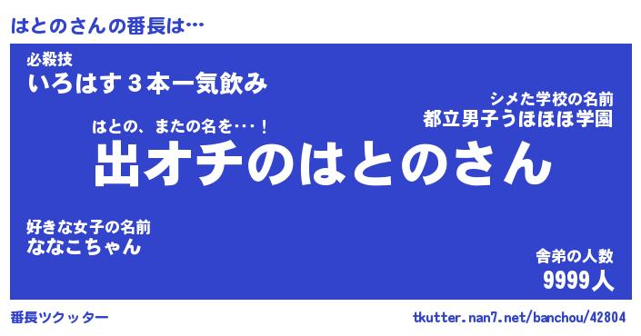 | 伝説のあだ名 | 『伝説のスナイパーはとの』 |