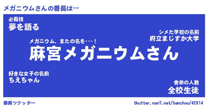 | ヒーロー風カッコイイあだ名 | 『スーパーメガニウム』『暗黒騎士メガ』 |