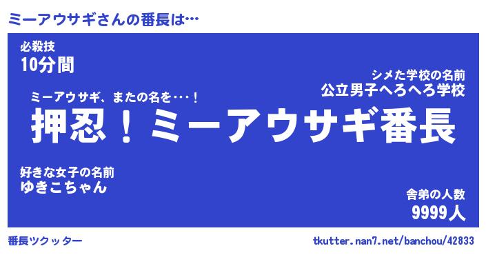 | ヒーロー風カッコイイあだ名 | 『スーパーミーアウサギ』『天弓騎士ミー』 |