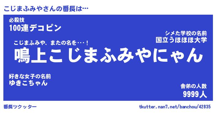 | 肩書あだ名 | 『こじまふみや店長』『こじまふみや団長』 |