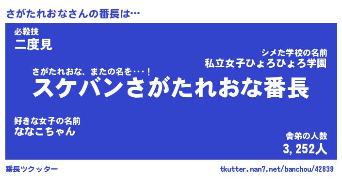 | 伝説のあだ名 | 『不死鳥のスナイパーさがたれおな』 |