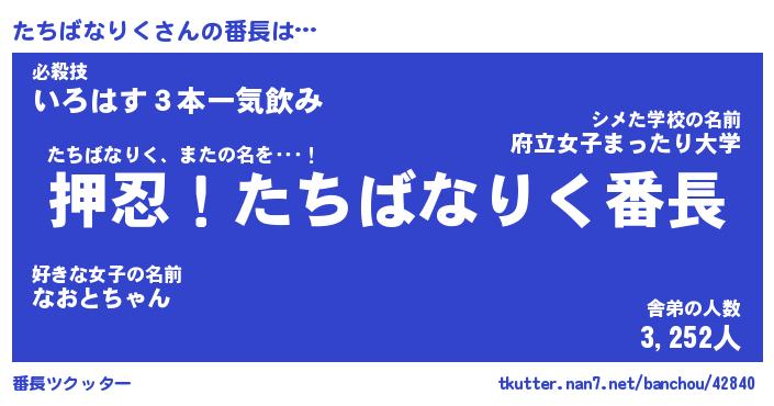 | 肩書あだ名 | 『たちばなりく社長』『たちばなりく班長』 |